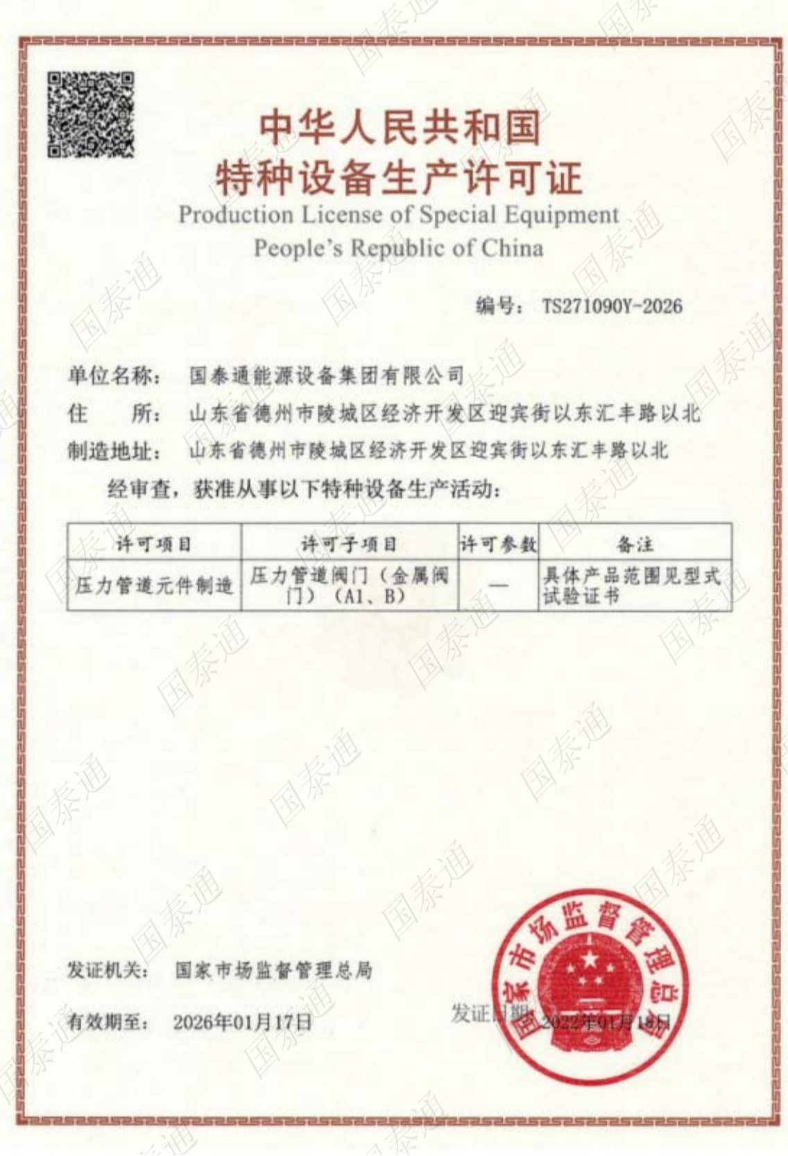 國泰通能源設備集團有限公司是一家國家級高新技術企業(yè),專注于閥門和燃氣調壓輸配設備設計、研發(fā)、生產、銷售、服務于一體的系統(tǒng)集成解決方案服務商。公司成立于2011年,注冊資金10168萬元,擁有北京運營中心和山東生產中心兩大基地,北京運營中心主要承擔集團公司的戰(zhàn)略規(guī)劃發(fā)展,山東生產基地承擔集團公司產品研發(fā)、生產和銷售服務,集團公司山東生產基地占地面積5萬余平方米,總建筑面積3萬余平方米,有著現(xiàn)代化的廠房和辦公大樓。集團公司經(jīng)過十多年的茁壯發(fā)展,現(xiàn)擁有中、高級工程師27名,生產服務技術人員二百余人......